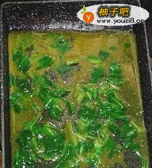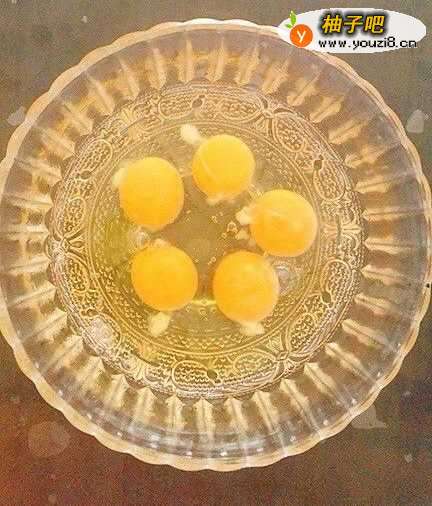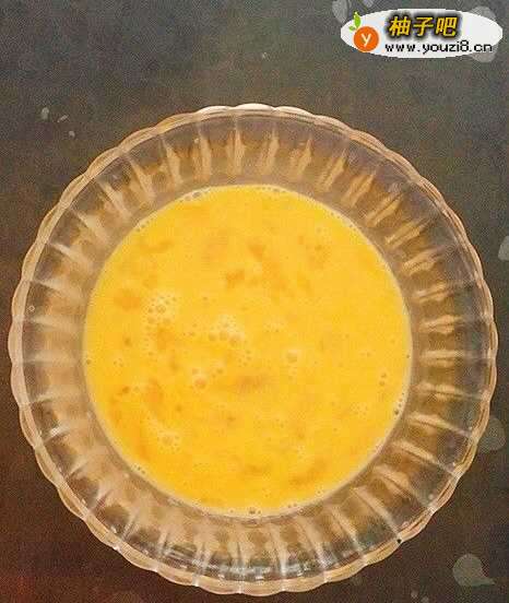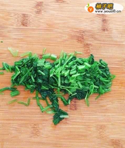 5蛋液中加入菠菜碎和盐搅拌均匀