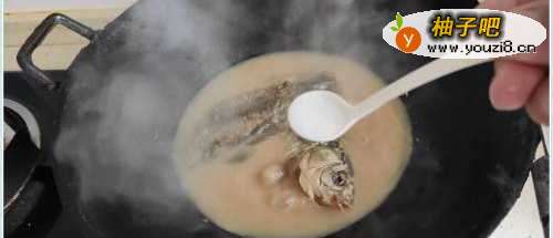 油锅中放入50毫升食用油,将鱼炸至两面金黄,加入400毫升开水。