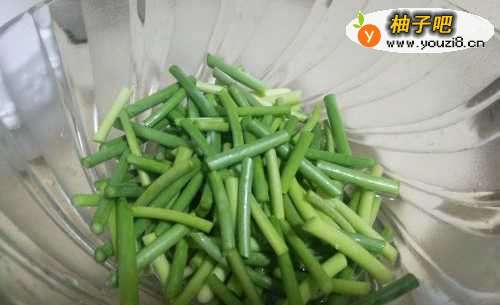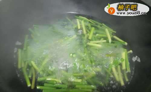 2锅中烧开水,放入蒜苔焯水1分钟。