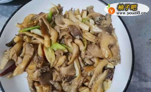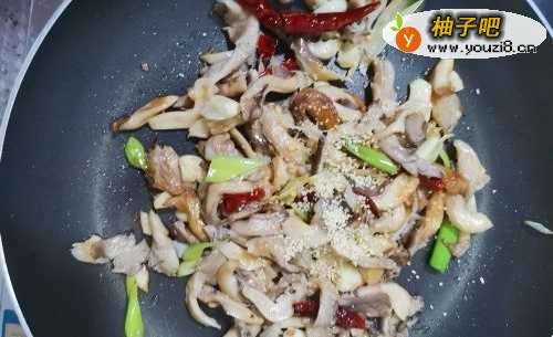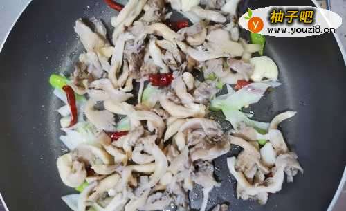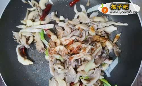 3接着,再往锅中倒入平菇,大火快速翻炒两分钟。如下图所示