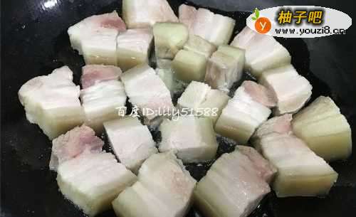 6烧热锅放油煎五花肉。