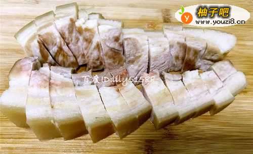 5五花肉沥水1个时之后,切成小块,如下图;