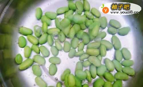 3锅中注水烧沸后,放2克食盐,把毛豆仁放下去煮两分钟,然后捞出过一下凉水,过了水的毛豆会显得颜色更加的翠绿。