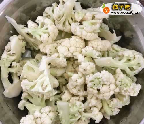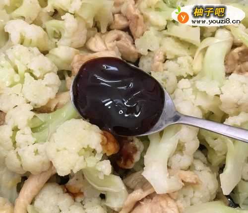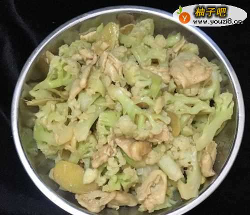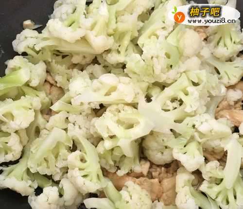 7之后放入花椰菜,翻炒均匀,要将花椰菜炒热。