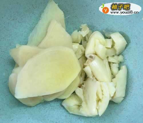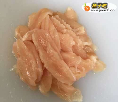 将jixiongrou洗净切片,用料酒、生抽、淀粉、食盐、芝麻油,腌制15分钟。