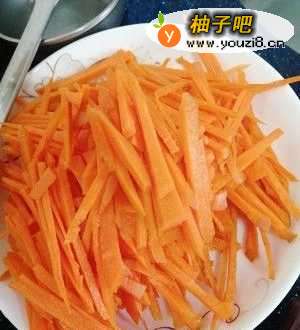 胡萝卜洗净,切丝。