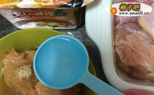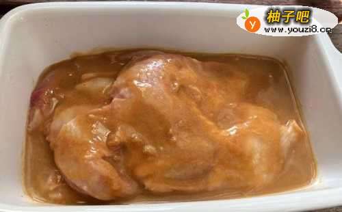 3用调料把鸡腿肉腌制1~3小时