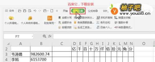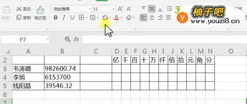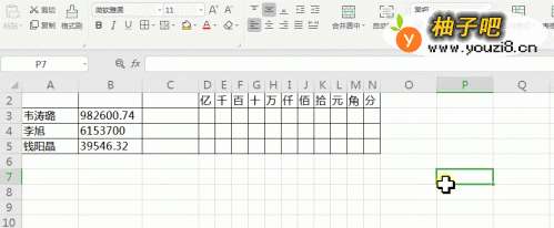 wps表格里金额数字如何拆分成“亿、千、百、十、万、仟、佰、拾、元、角、分”?