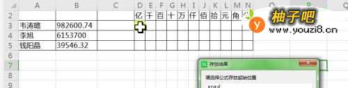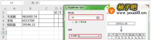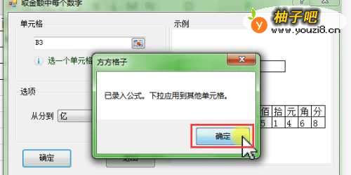 4【取金额每个数字】→ 【单元格】选择“B3”→ 单击【确定】