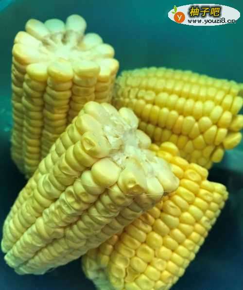 玉米掰成两段,洗干净,对半切,然后用手掰成玉米粒。罩粒光