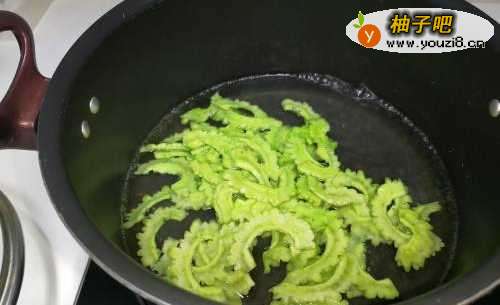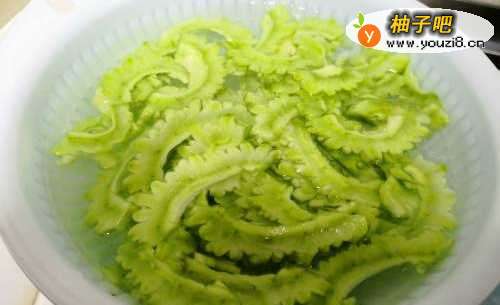 22.把苦瓜片放到水中浸泡15分钟,这样可以去掉一些苦涩味,但又能保留苦瓜的清香。