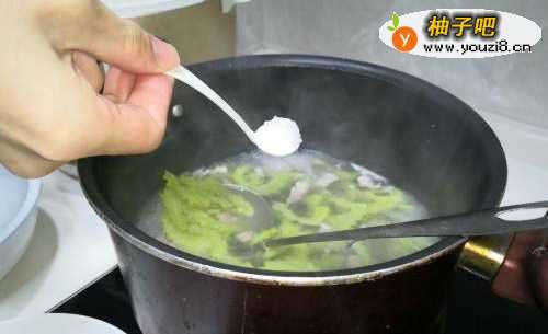 66.加入一勺盐,可以看个人口味加点葱花,苦瓜瘦肉汤就好了。