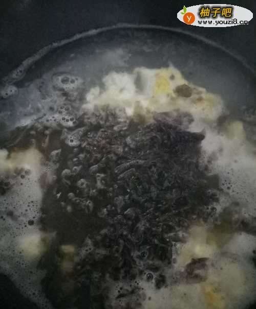 6煮沸,紫菜熟了。起锅前放些盐即可