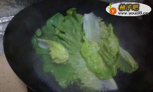 生菜掰下来洗净,蒜瓣切成蒜末备用。