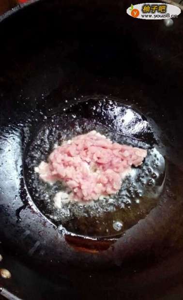 4锅内热油倒入肉粒爆炒直八成熟,捞起