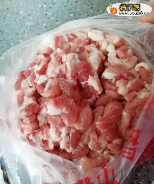 准备好切成小块的肉片,在锅里到入油(油里是上一道菜留下的花椒,假装看不见)