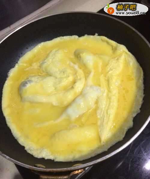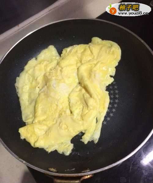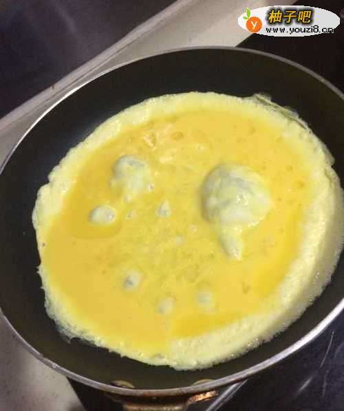 3热锅下油,鸡蛋打进去,待底部稍微凝固;