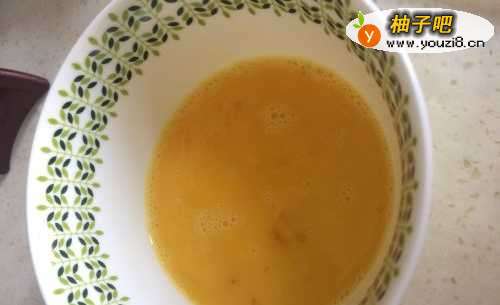 2鸡蛋碗里打碎,加入少量清水(这是鸡蛋嫩滑的关键);
