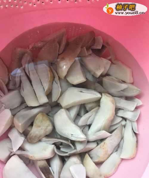 3倒出草菇放入凉水中泡一会。然后捞出,沥干水。