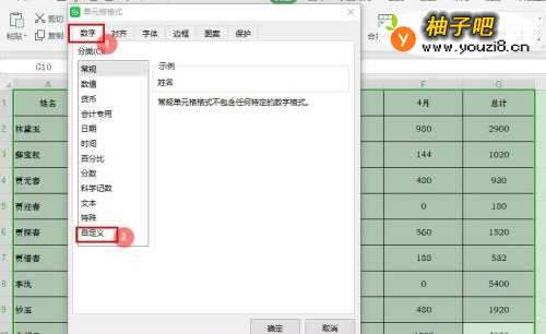 3在“单元格格式”窗口,选择数字分类【自定义】;