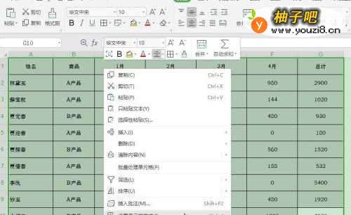 2选择表格区域【A1:G10】,单击【鼠标右键】,选择【设置对象格式】;