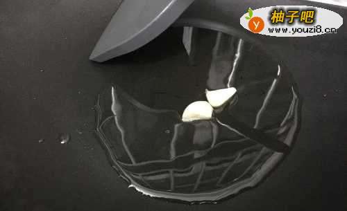 3热锅烧油,加入蒜瓣炒香。
