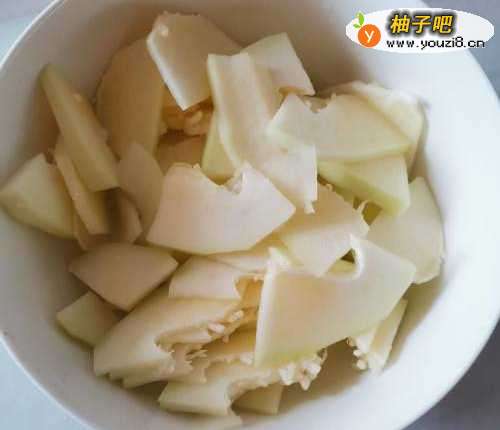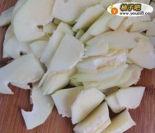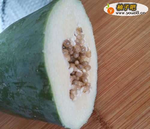 新鲜的青木瓜300克左右,去掉表皮和籽,清洗干净。
