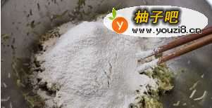 6再加入面粉150克,搅拌一下。