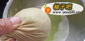 3把萝卜丝包进纱布,挤出水分。(每种萝卜每个时期含水量不同,我这次大约挤出150克萝卜汁。)萝卜汁先别倒掉哈。