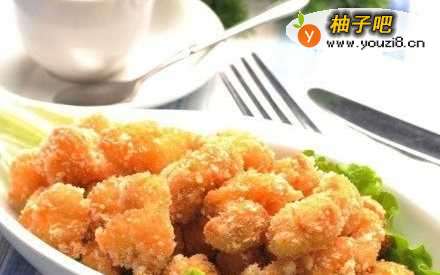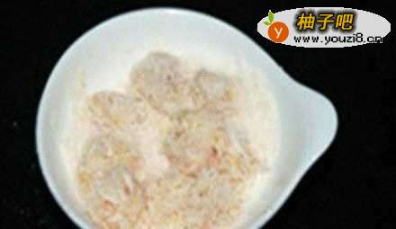 5最后倒进装面包糠的碗里,沾一层面包糠