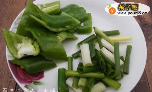 4把青椒洗净切成段,大葱洗净切成段