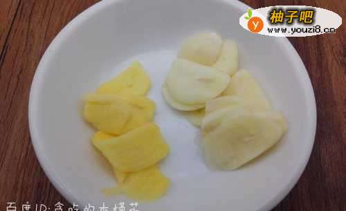 3生姜、大蒜去皮洗净,切成薄片装入碗里备用