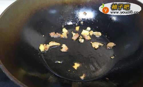 22.大火热锅,下油,放葱、蒜末爆香。