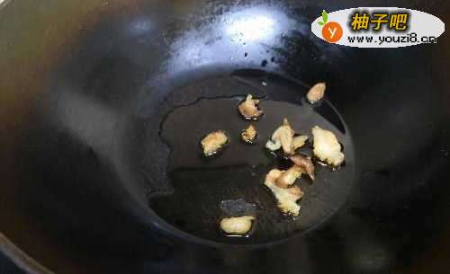 33.放入切好的肉,进行煸香,可以加一点点生抽(半勺左右)。