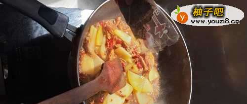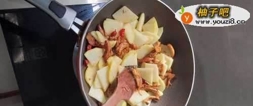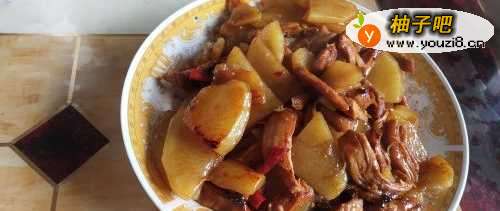 11如图,将做好的美味土豆炖鸡柳盛入盘内即可食用。