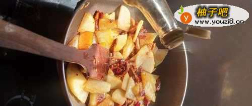 4如图,锅内加入适量色拉油,烧至八成热后放入鸡柳。