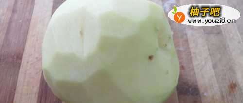 2如图,取来一个新鲜土豆,去皮后切成均匀的片状。