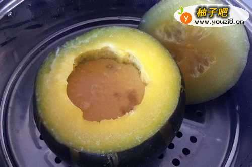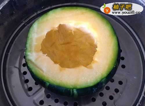 4将小南瓜连同盖子一同放入蒸锅,大火蒸15~20分钟至小南瓜八九成熟即可。