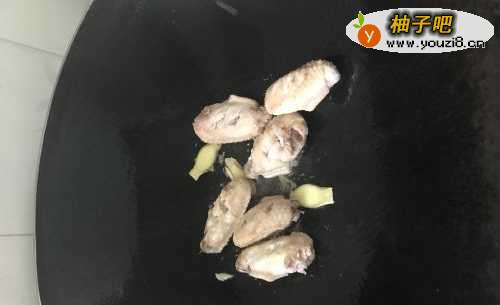2炒锅烧热,放入适量的油。把鸡翅放入,微微煎一下。两面都要煎哦!