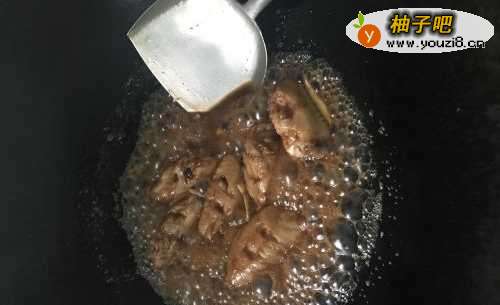 5待可乐汁变少,放入少许盐中和调味。看到汁收得差不多了,就可以熄火了。