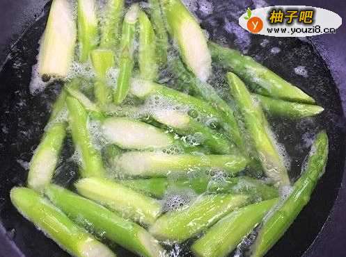 5起锅烧水,水开后放入芦笋过水焯一下,捞出备用;