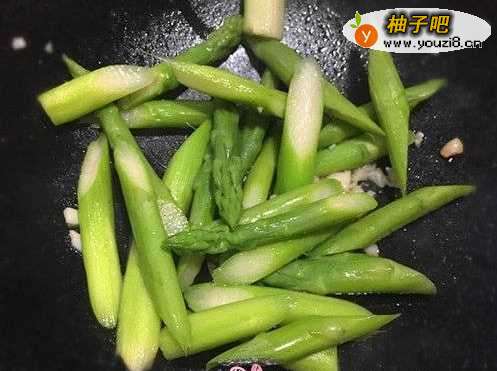 6起锅热油,放入蒜爆香,放入芦笋翻炒一下;