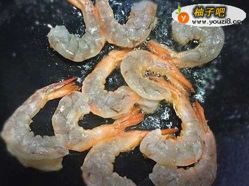 4起锅热油,放入腌制过的虾烤至两面金黄盛出备用;