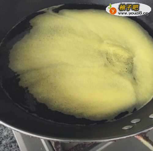 4倒入菜籽油待油泡散尽关火降低温度,倒入牛肉条,再用小火炸5到8分钟左右就差不多的,