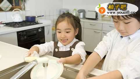 爸爸晚上下班后,要帮助妻子分担家务。让妻子放松一下。