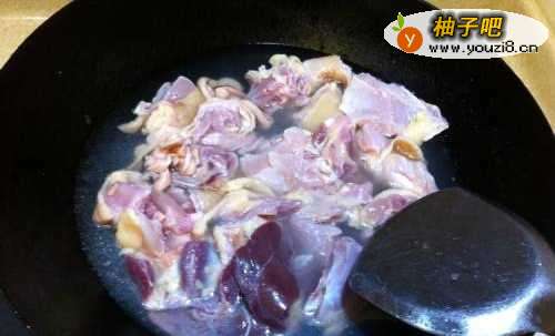 2焯水,把血沫煮出来后把水倒掉,盛出鸡肉备用