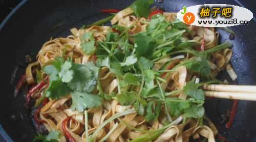 77.关火,加入切好的香菜搅拌均匀就好了!一道香喷喷的家常菜就做好了。可以大饱口福了。