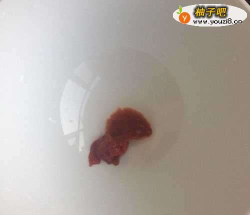 4另取一个小碗,在里面加入少许炒菜用的番茄酱、再加两茶匙的黑醋、一茶匙的生抽、半茶匙的清水,然后搅拌均匀稍后使用。