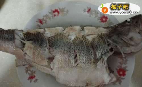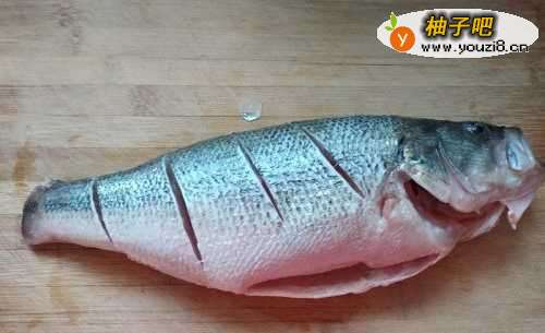鱼身上用刀划几下,为了后面腌制更加入味。