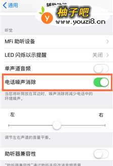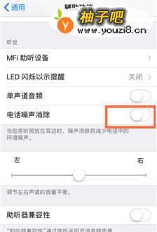 4下拉辅助功能差不多倒最下面,找到“听觉”,里面有一个“电话噪音消除”。